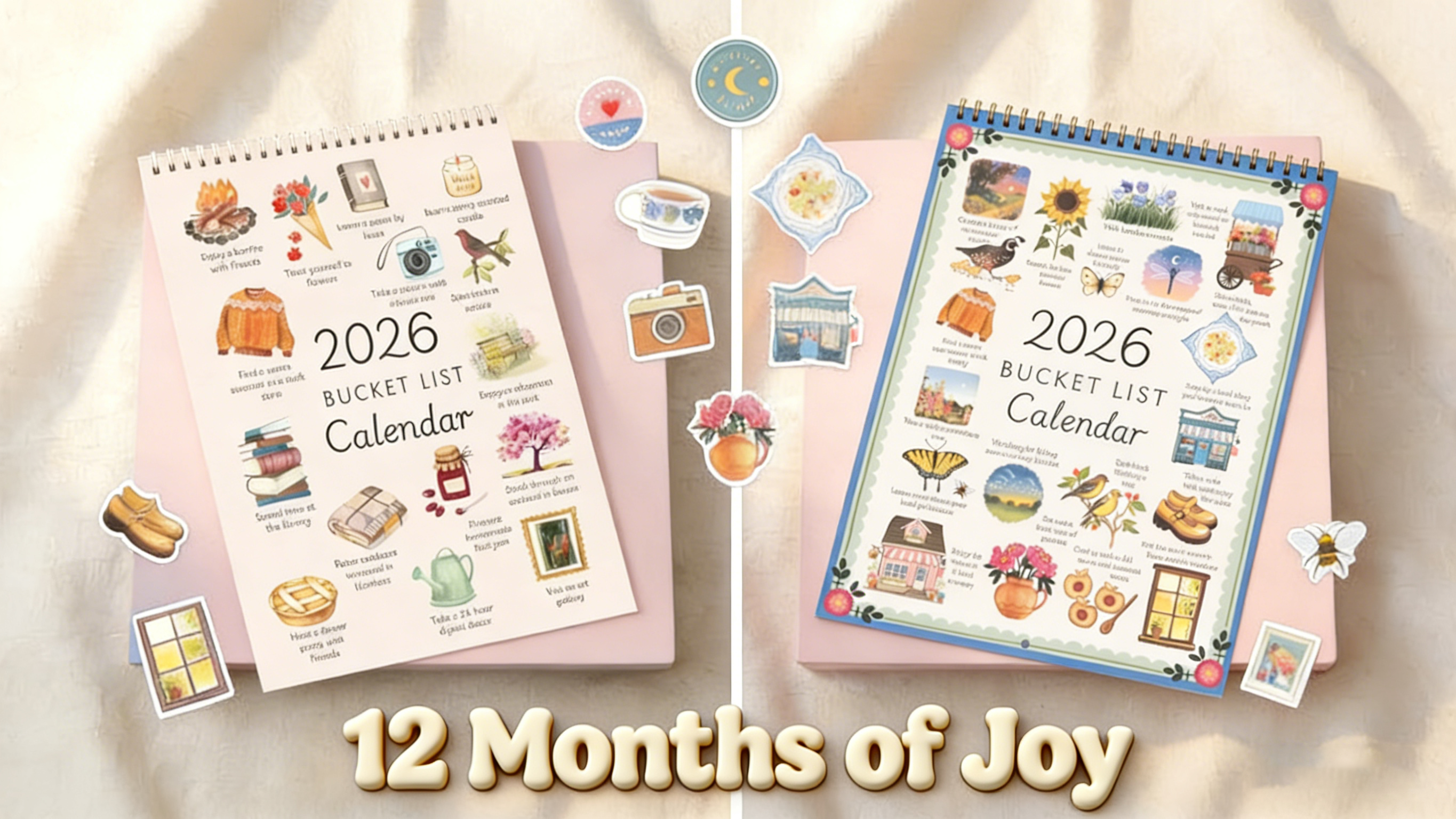 Meet your 2026 companion: the 2026 Bucket List Calendar—where every page is an invitation to slow down, savor small bliss, and turn routine into something special. Available in two charming themed designs, this calendar blends whimsical art with actionable, heartwarming activities to make your year feel intentional and full of delight.
