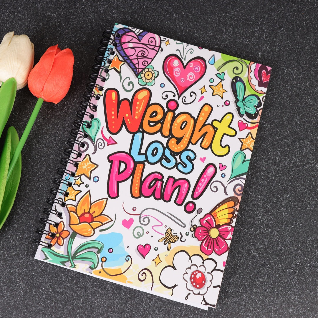 A vibrant doodle-style daily weight loss tracker with time-blocked pages for logging meals, mood and energy. It features visual checklists for easy habit tracking and a compact, portable design—perfect for beginners, creative sticker/doodle lovers, and busy on-the-go professionals/students who want to build healthy habits without screen time.