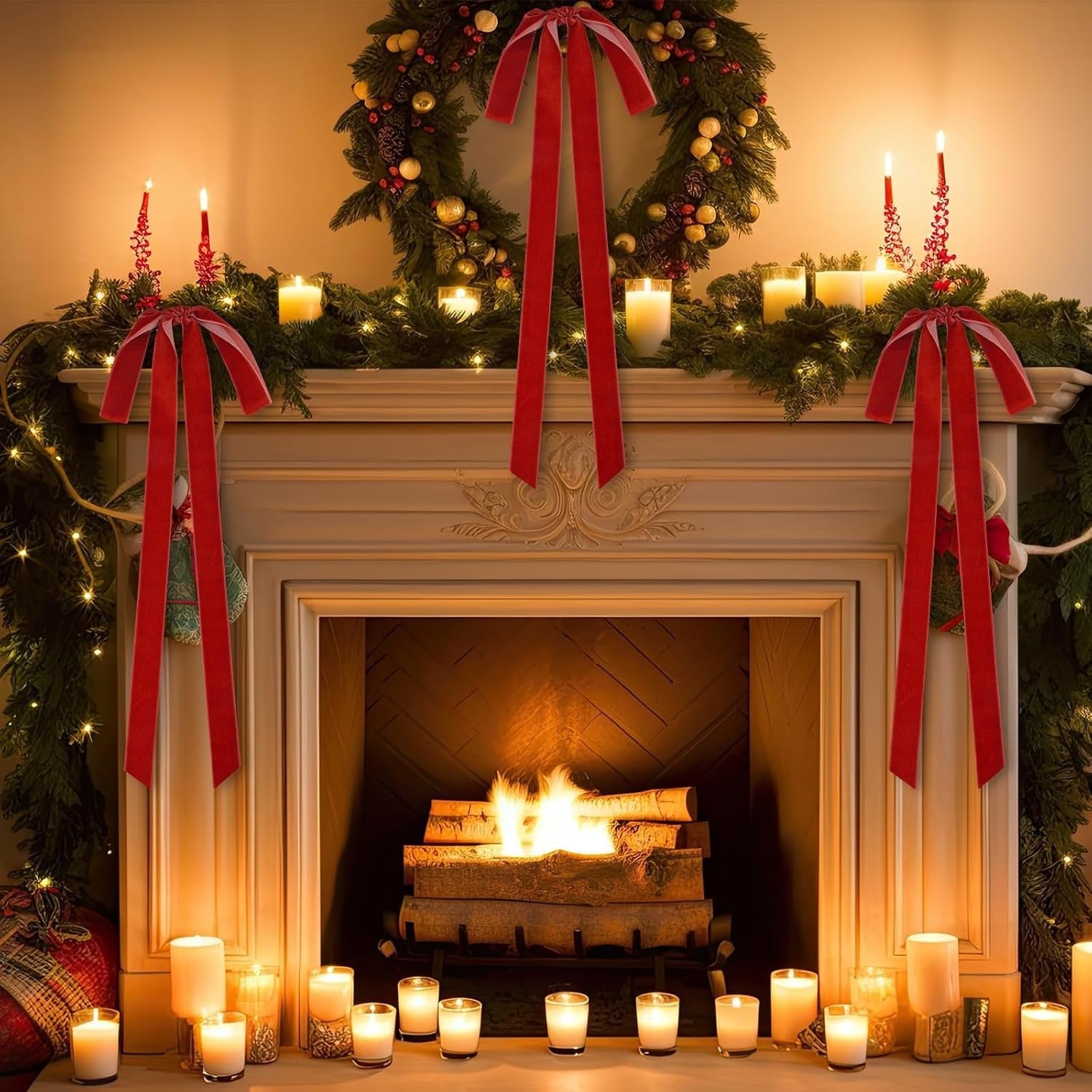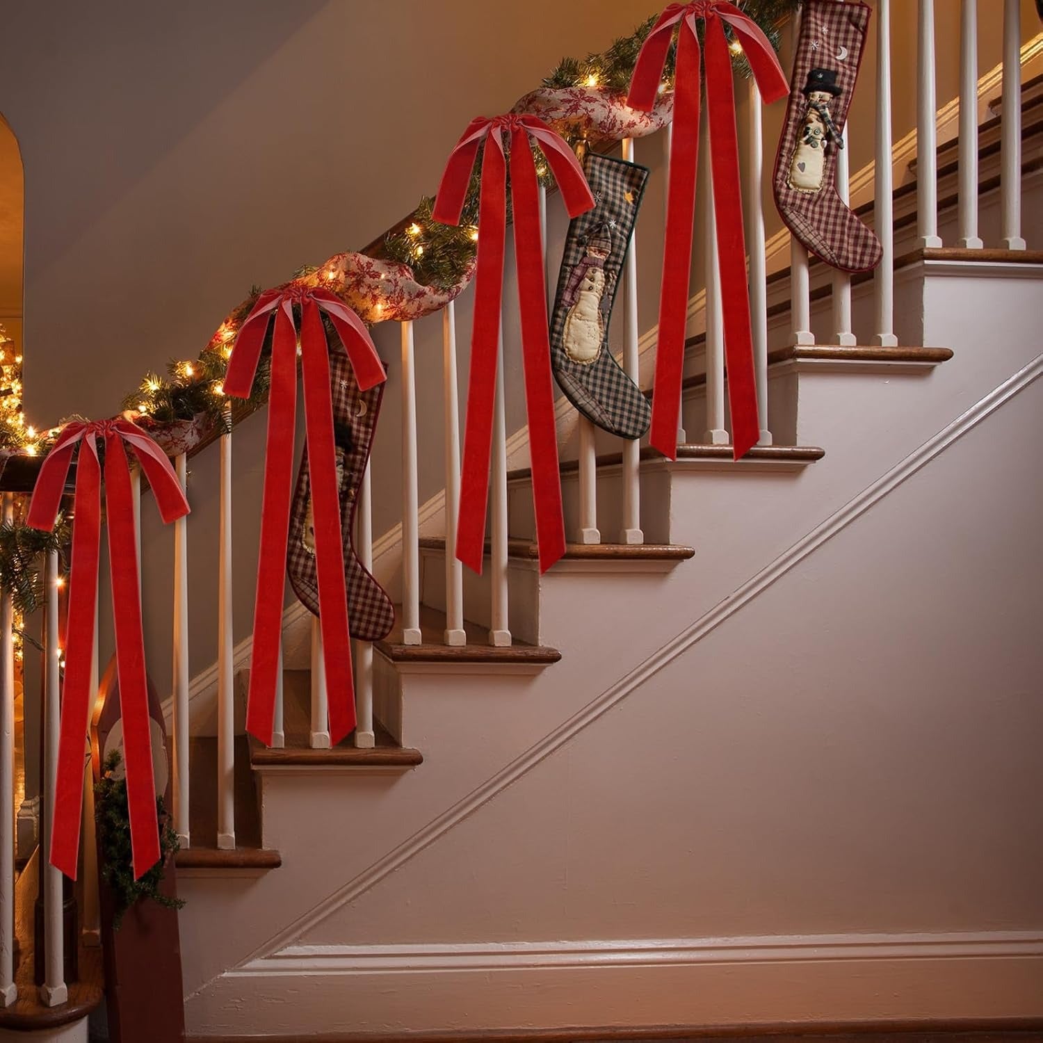 ✨️Widely Use: each velvet bow is about 8.9 x 25.6 inch/ 22.5 x 65 cm, suitable decoration for many occasions, Christmas trees, gift boxes, wreaths, windows, fences, fireplaces, outdoor settings